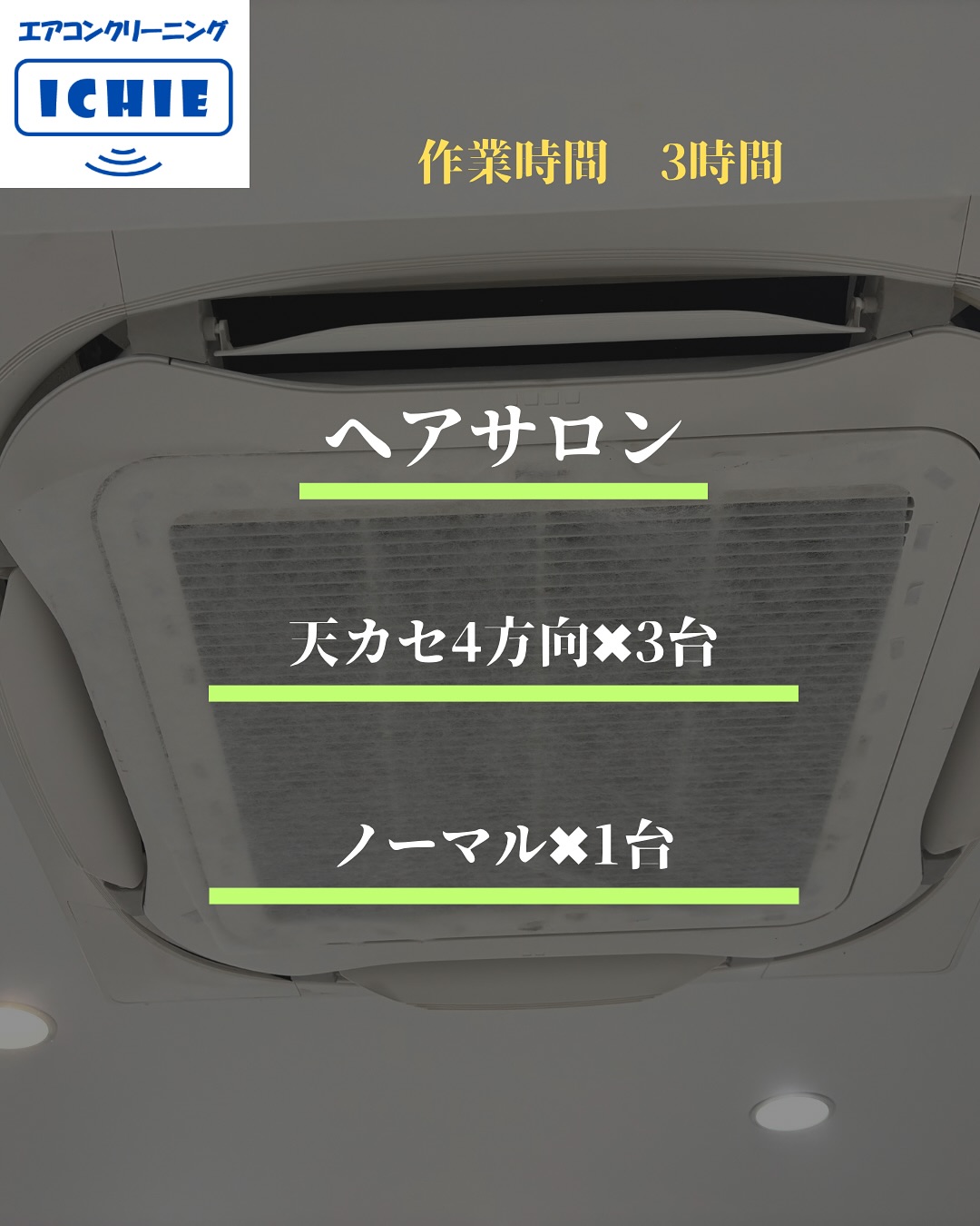 【ヘアサロン】 天カセ4方向✖︎3台、ノーマルエアコン✖︎1台のエアコンクリーニングを実施しました