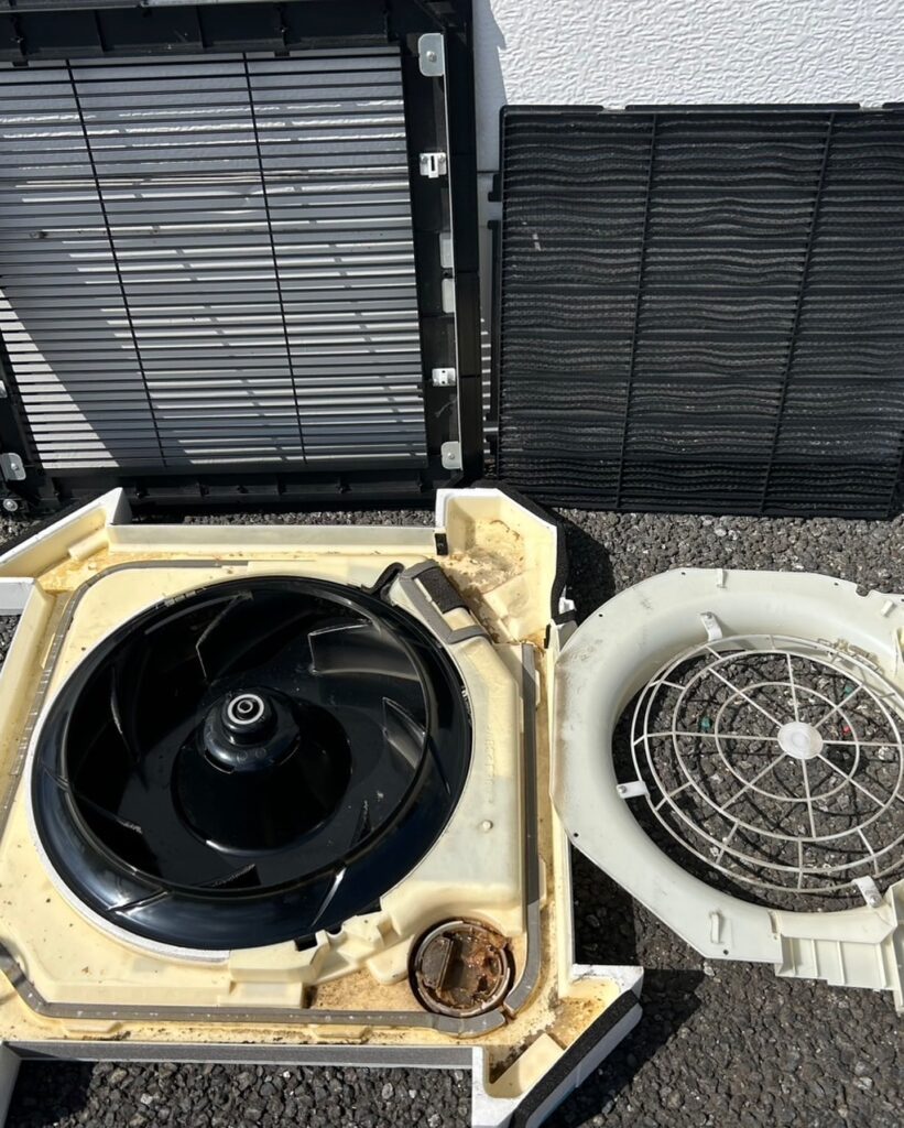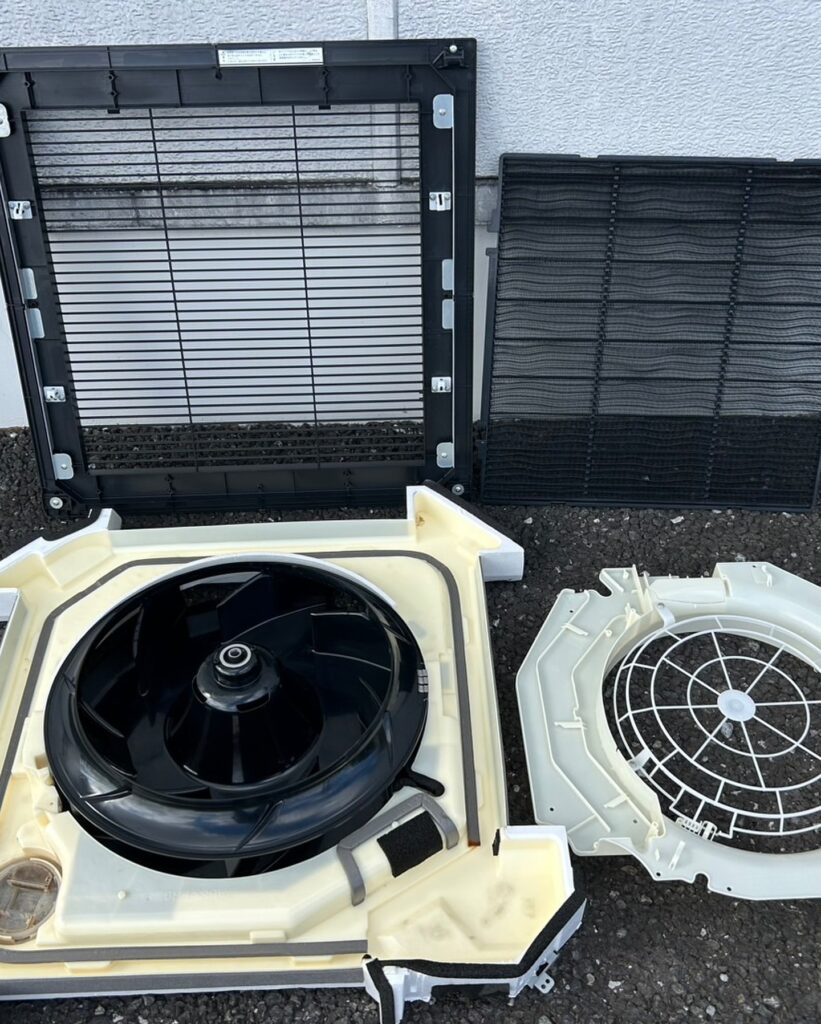 エアコンのパーツを取り外していき、丸裸の状態にします。