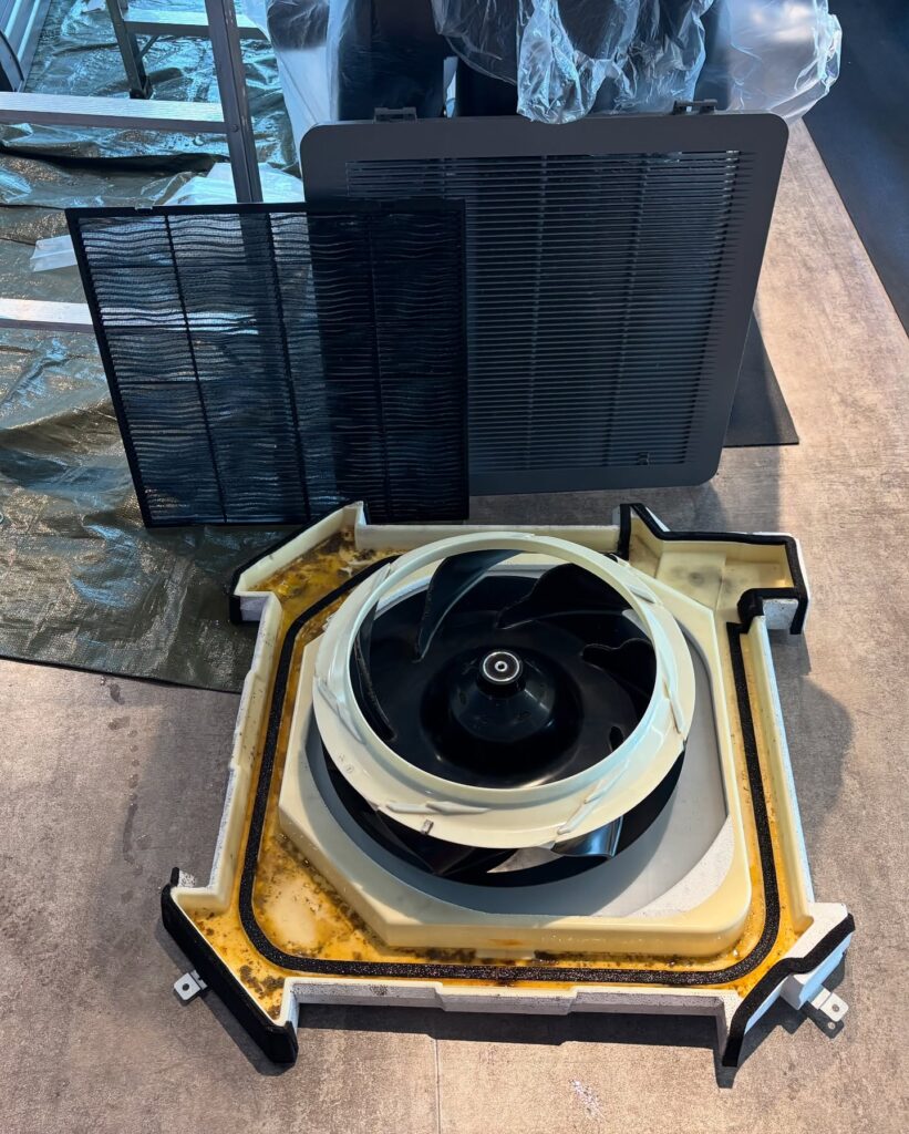 エアコンのパーツを取り外していき、丸裸の状態にします。