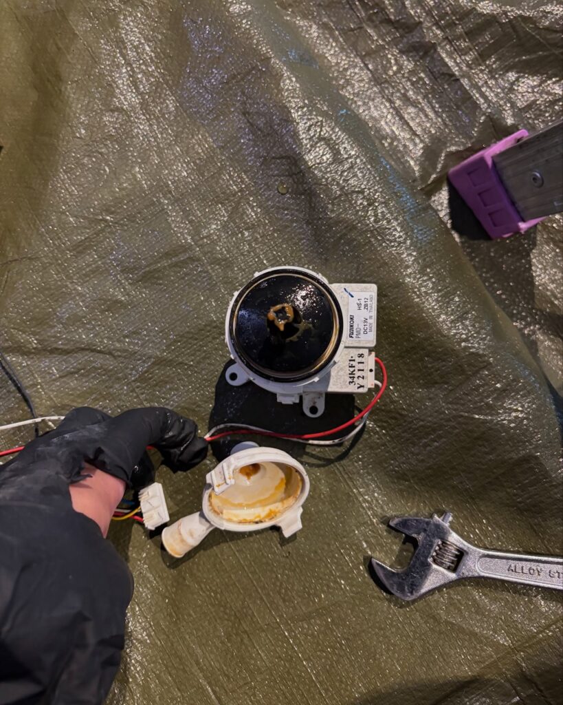 この時、ドレンポンプ(排水ポンプ)とドレンホース(排水ホース)内にも高圧洗浄を実施します。