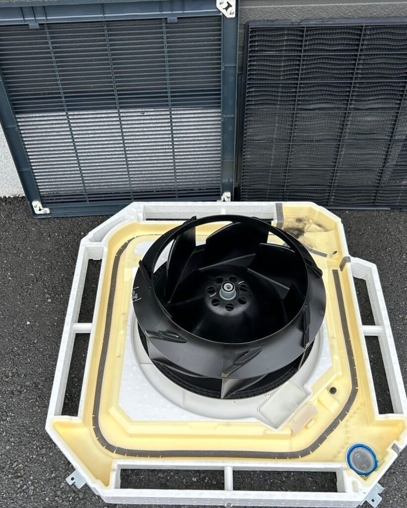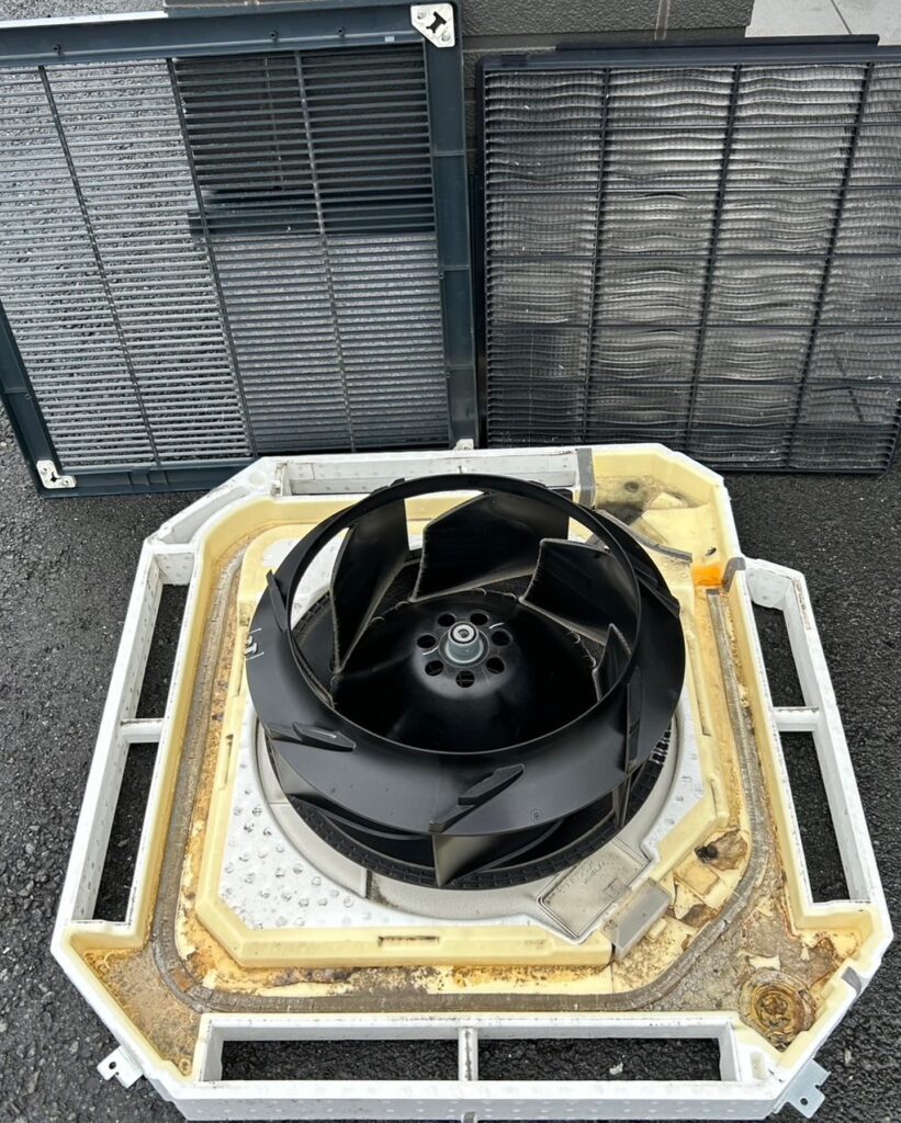 夏場に業務用エアコンで発生するエラー停止のほとんどは、ドレンパン(結露水の受け皿)に溜まった水がカビにより固形化し、それを吸い上げたドレンポンプ・ドレンホースが詰まることによるものです。