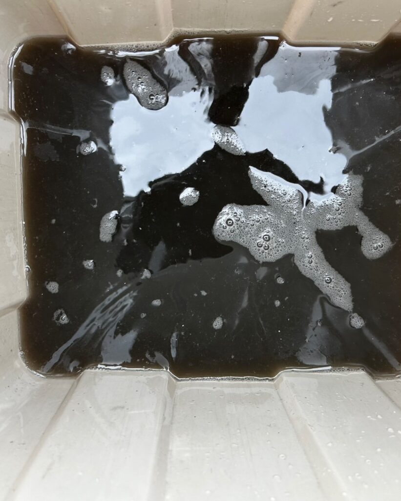 エアコン内部と取り外したパーツにエアコンクリーニング用洗剤を噴霧し、高圧洗浄により汚れを取り除いていきます。