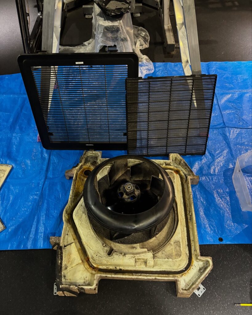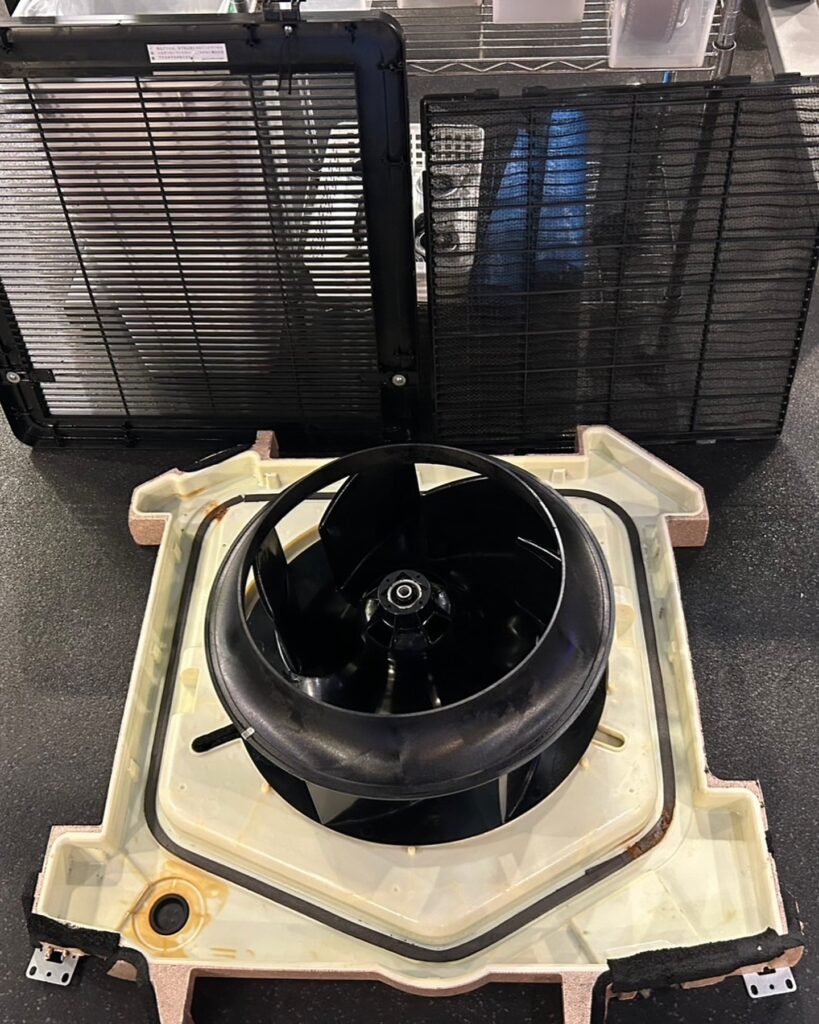エアコンのパーツを取り外していき、丸裸の状態にします。
