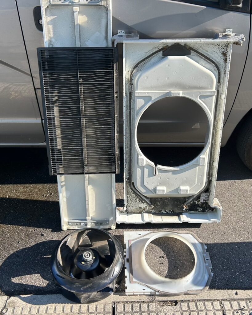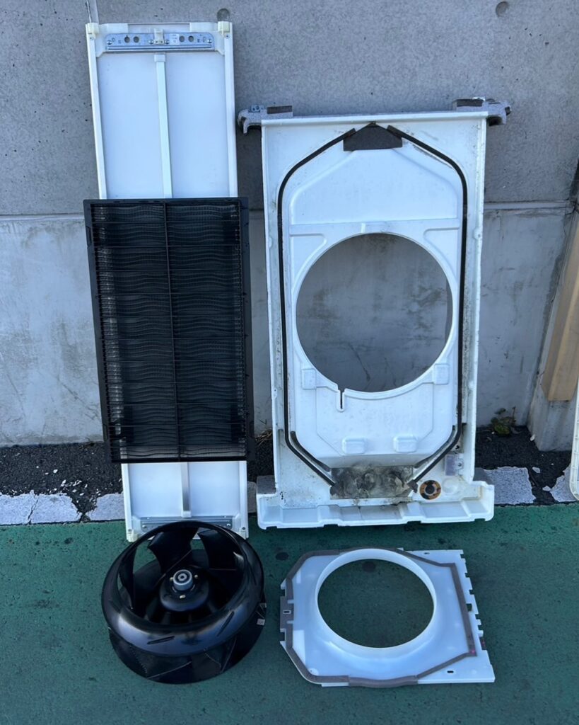 エアコンのパーツを取り外していき、丸裸の状態にします。