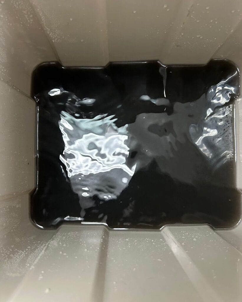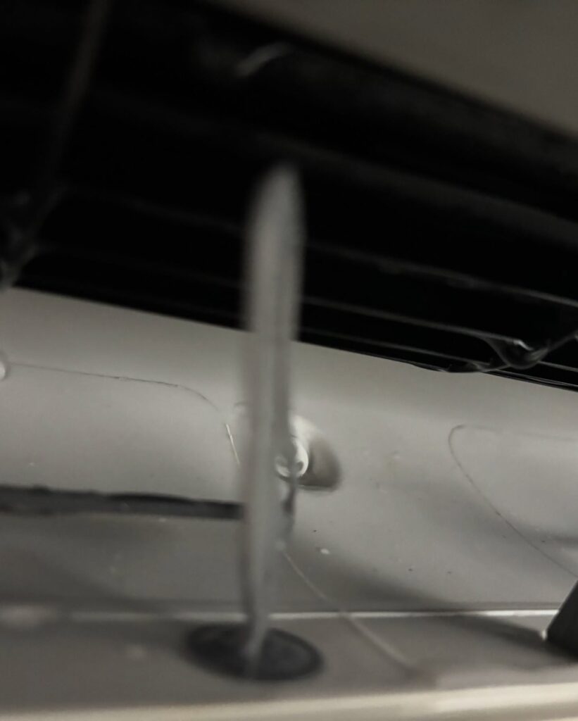 エアコン内部と取り外したパーツにエアコンクリーニング用洗剤を噴霧し、高圧洗浄により汚れを取り除いていきます。