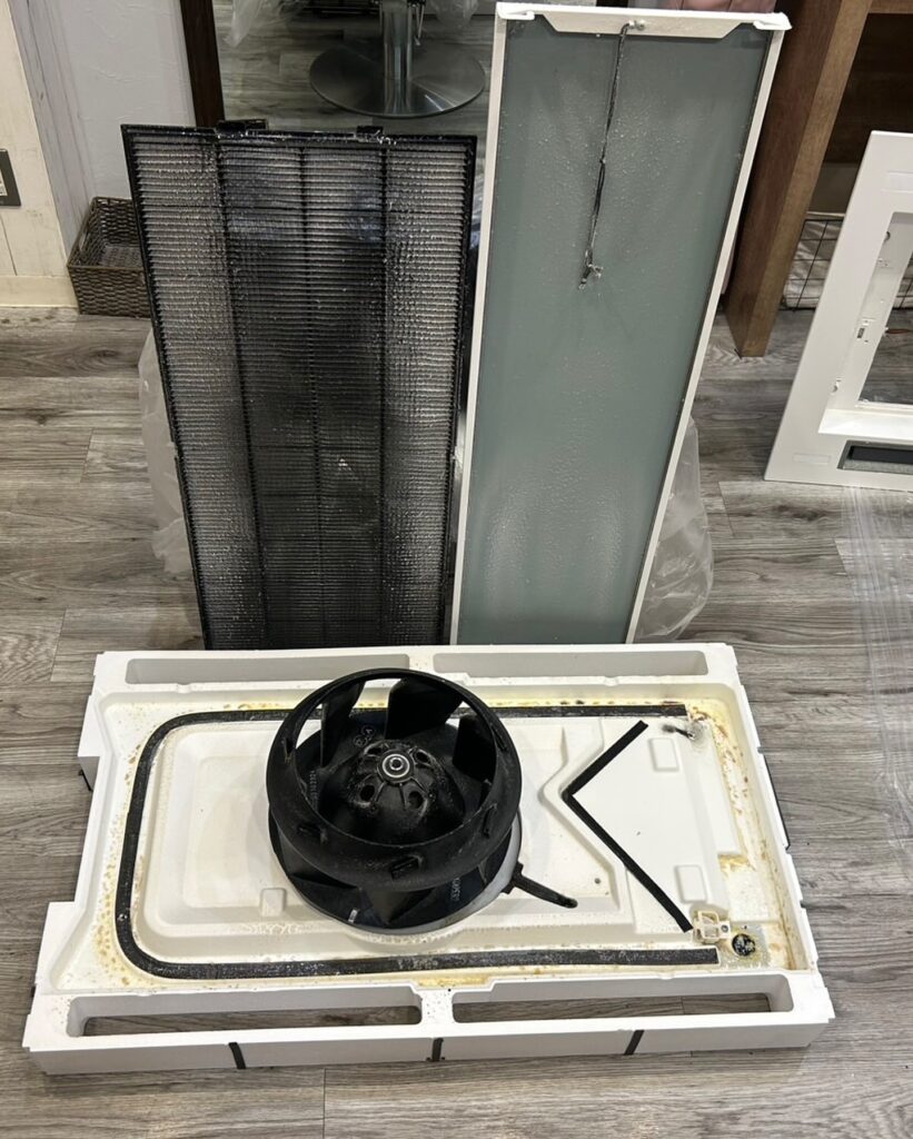 エアコンのパーツを取り外していき、丸裸の状態にします。