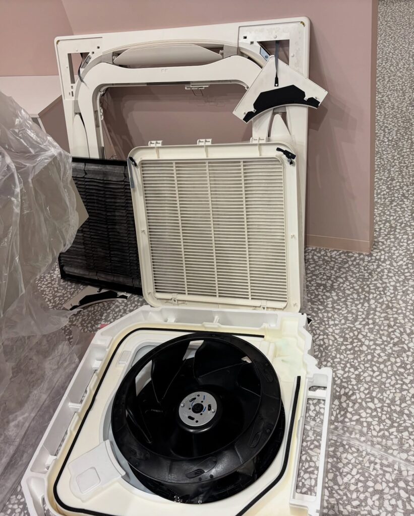 エアコンのパーツを取り外していき、丸裸の状態にします。