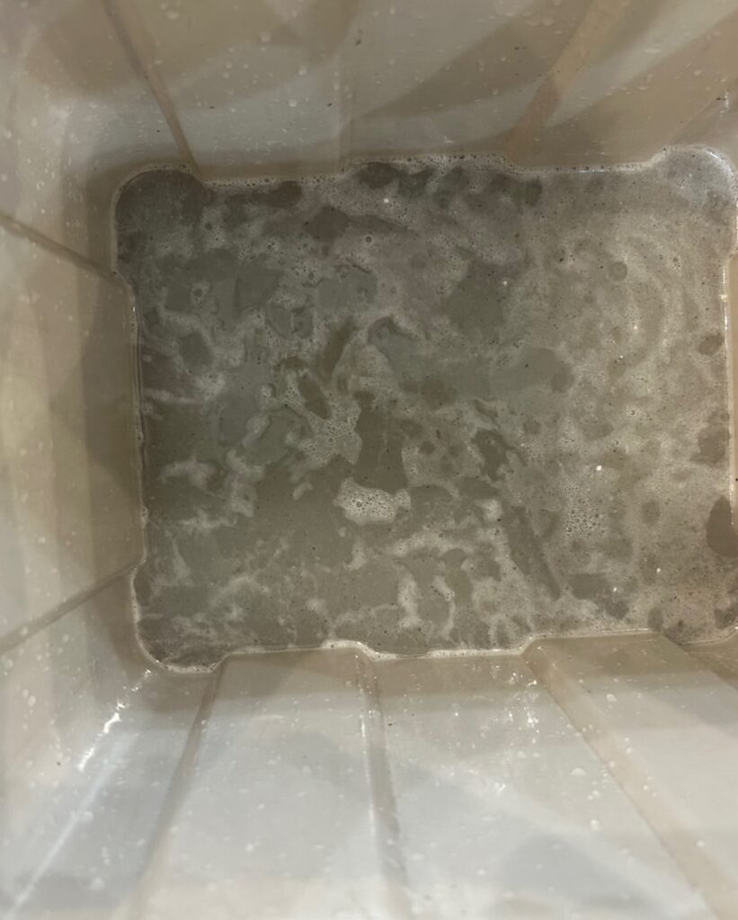 エアコン内部と取り外したパーツにエアコンクリーニング用洗剤を噴霧し、高圧洗浄により汚れを取り除いていきます。