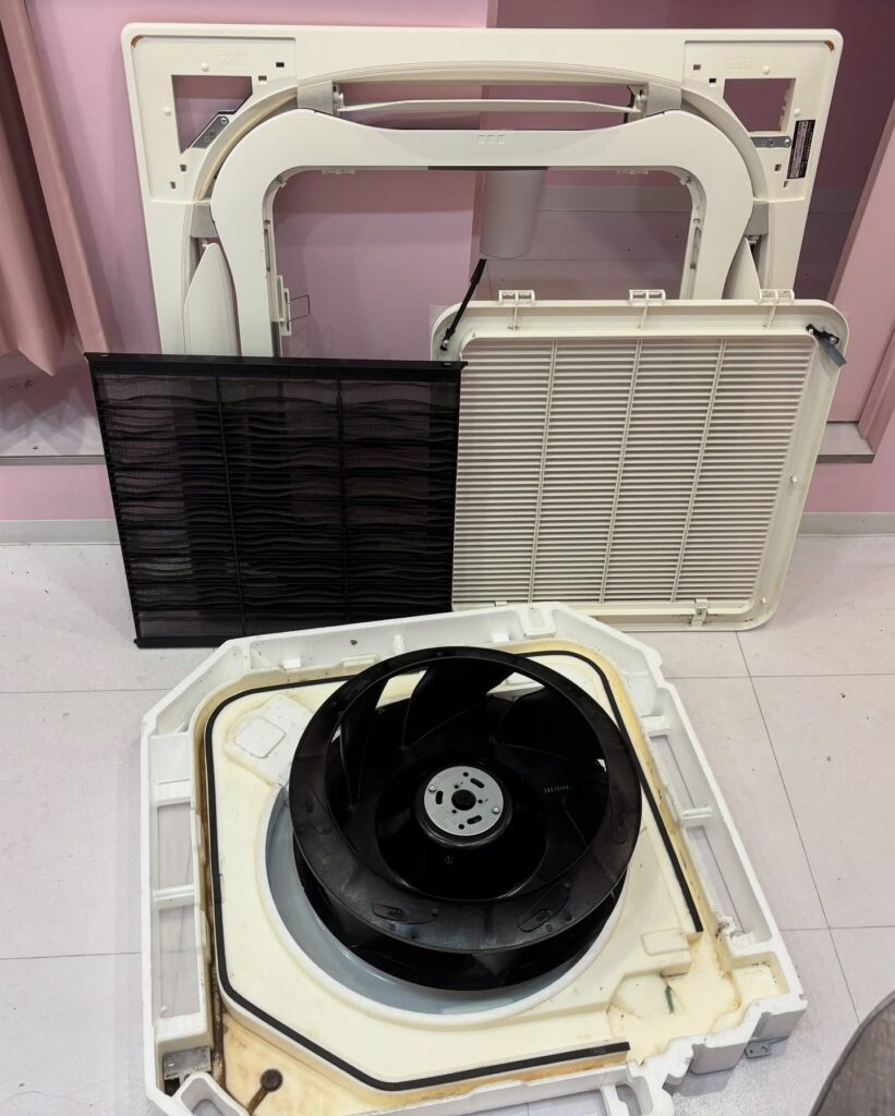 エアコンのパーツを取り外していき、丸裸の状態にします。