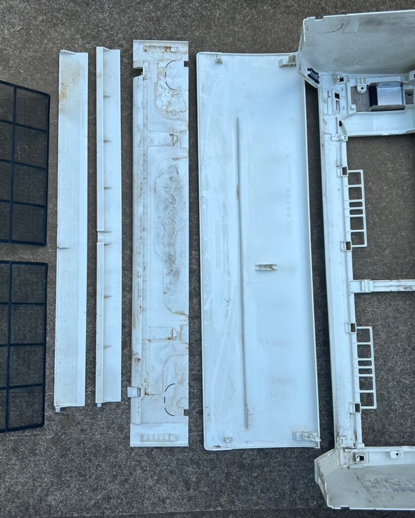 エアコンのパーツを取り外していき、丸裸の状態にします。
