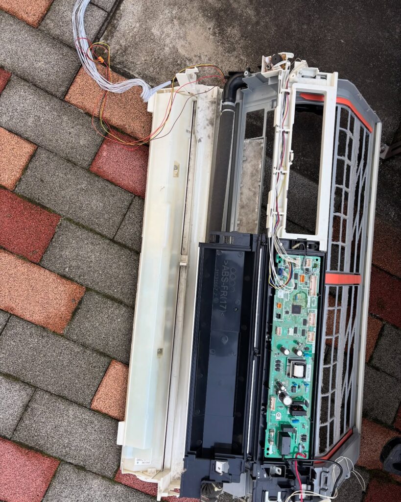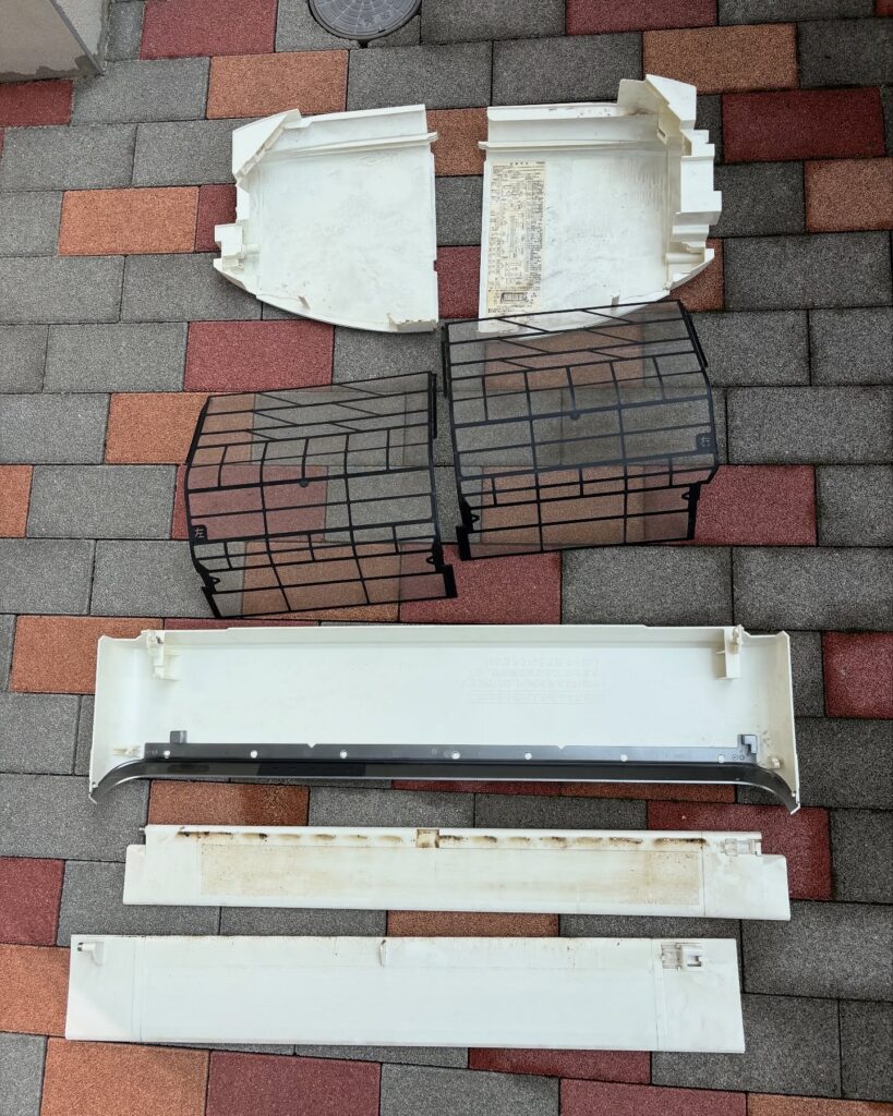 エアコンのパーツを取り外していき、丸裸の状態にします。