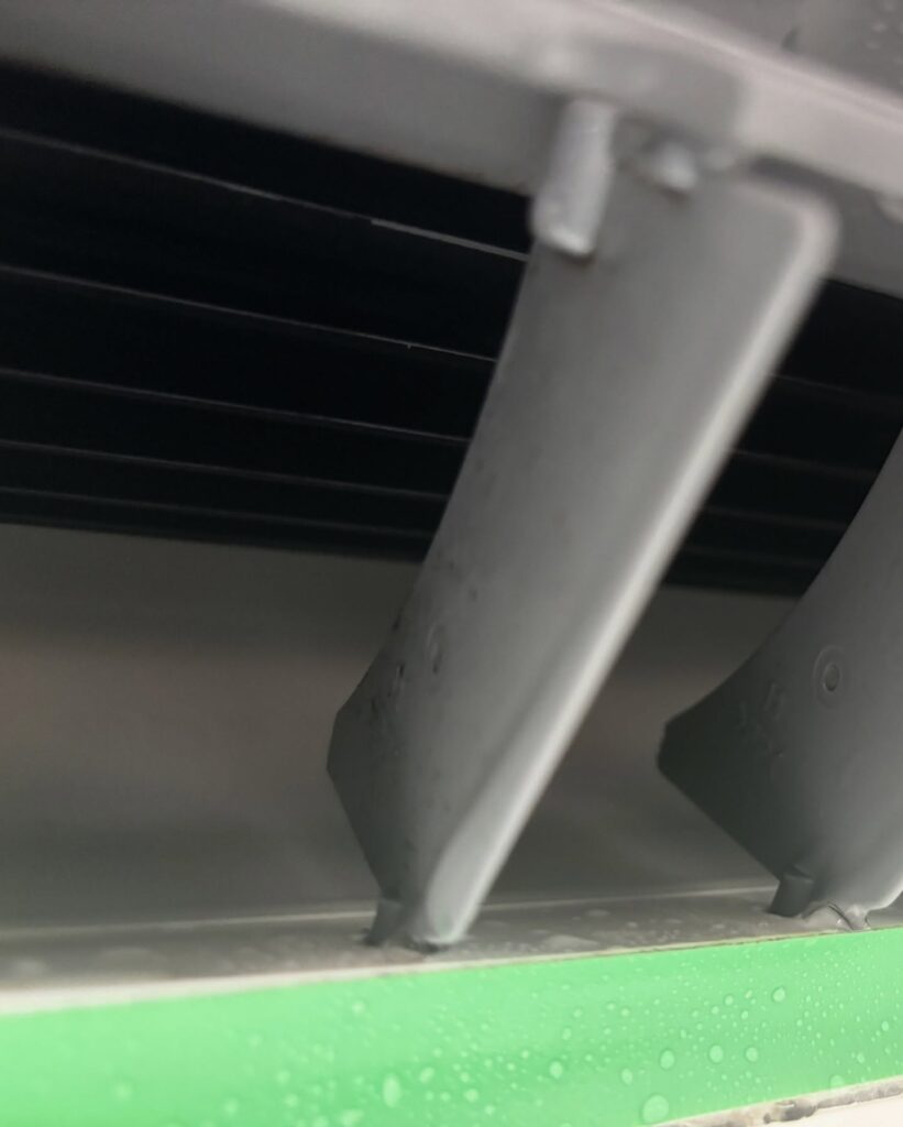 エアコン内部と取り外したパーツにエアコンクリーニング用洗剤を噴霧し、高圧洗浄により汚れを取り除いていきます。
