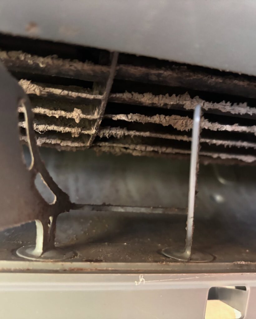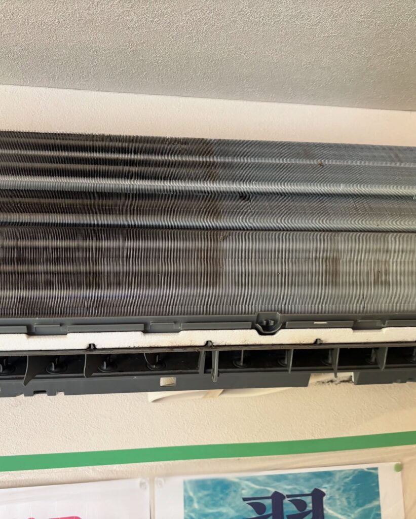 エアコン内部には油汚れやホコリが蓄積しています。