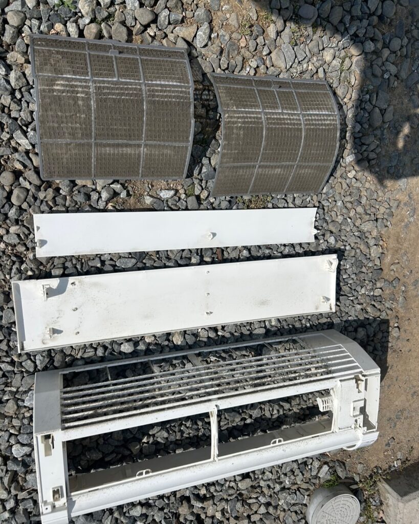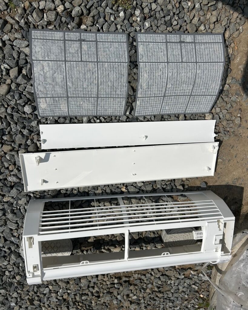 エアコンのパーツを取り外していき、丸裸の状態にします。