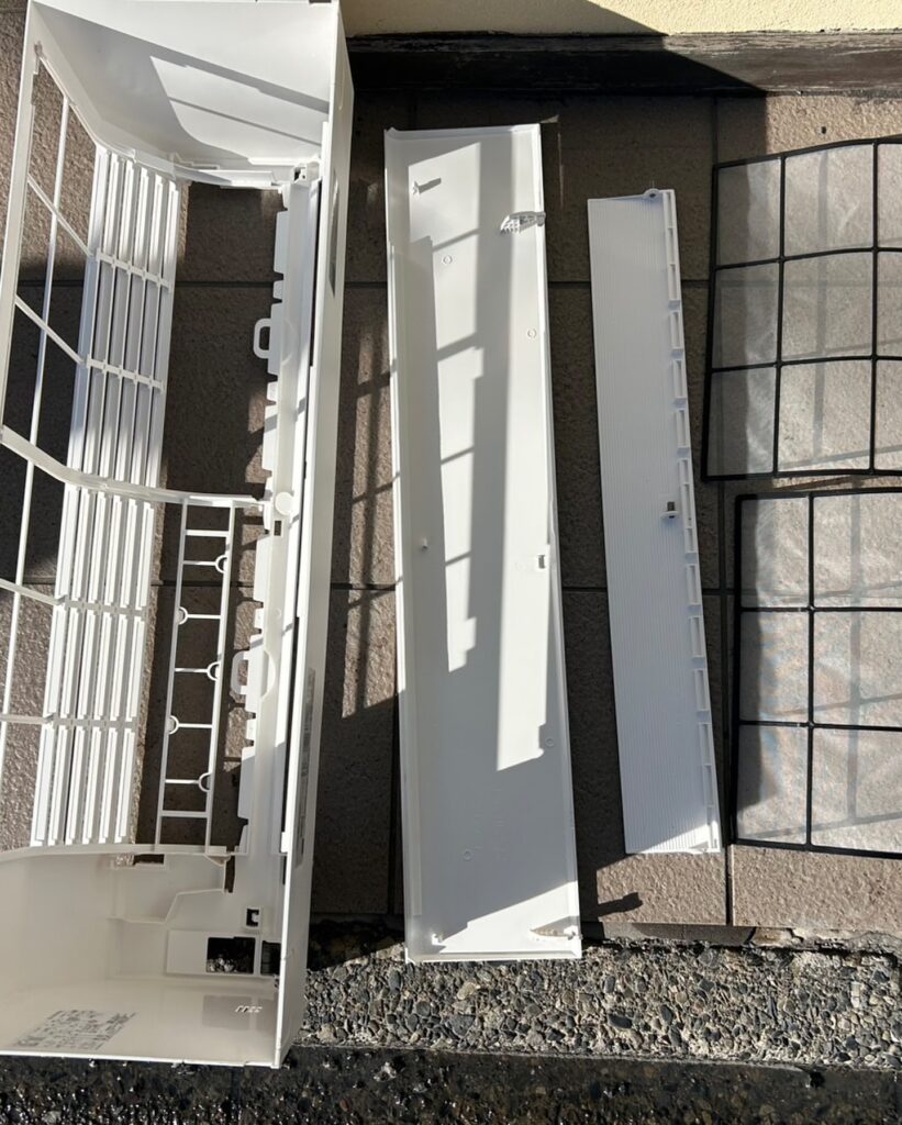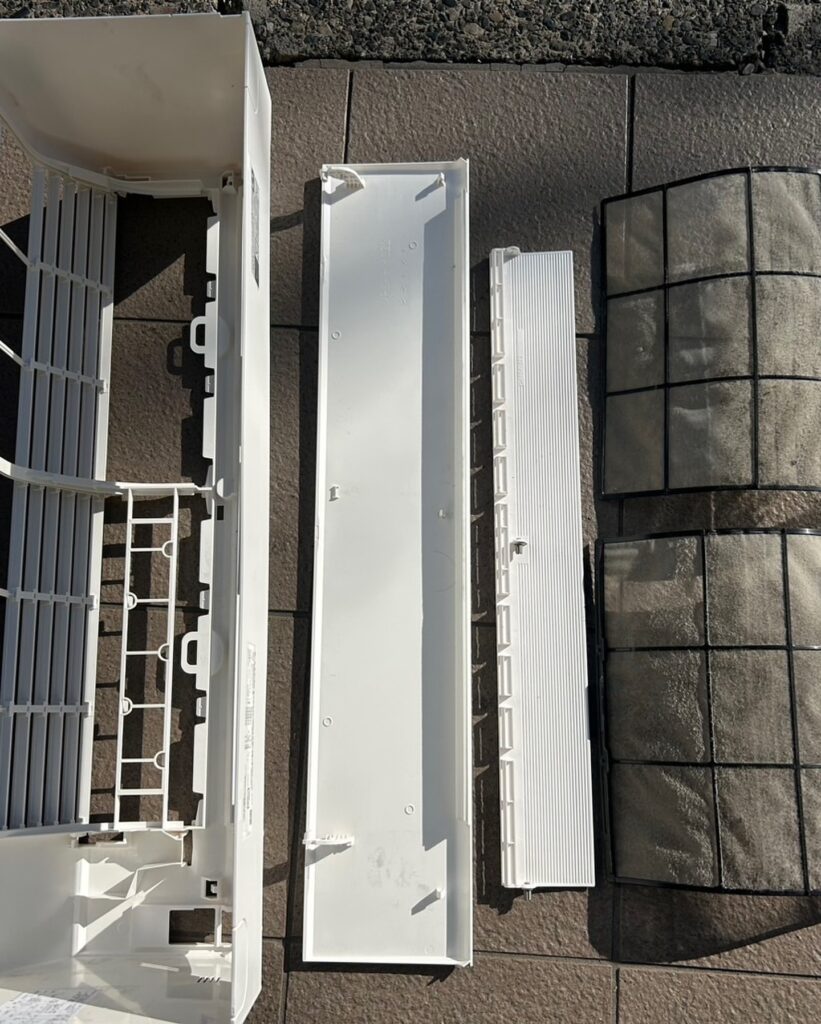 エアコンのパーツを取り外していき、丸裸の状態にします。