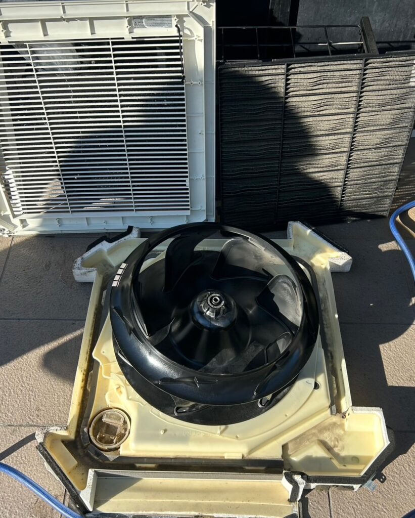 夏場に業務用エアコンで発生するエラー停止のほとんどは、ドレンパン(結露水の受け皿)に溜まった水がカビにより固形化し、それを吸い上げたドレンポンプ・ドレンホースが詰まることによるものです。