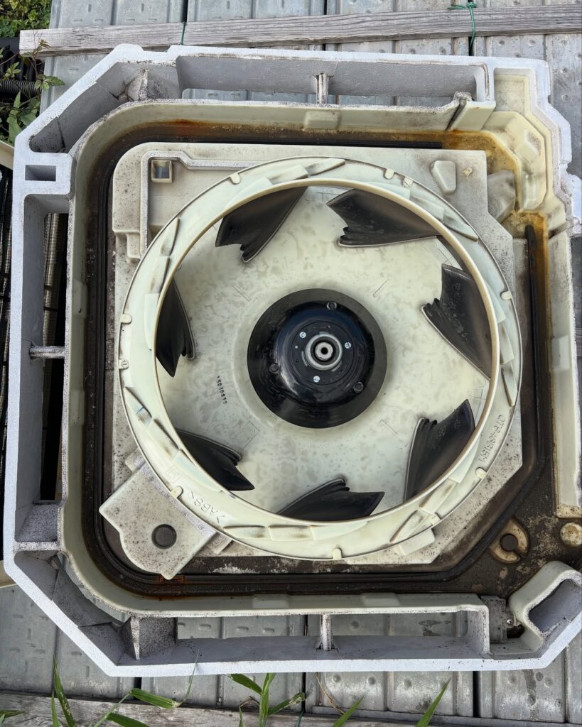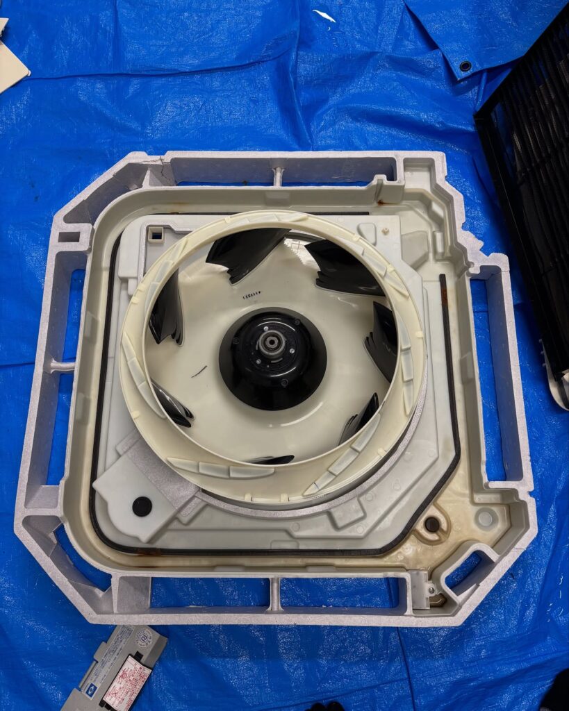 エアコンのパーツを取り外していき、丸裸の状態にします。