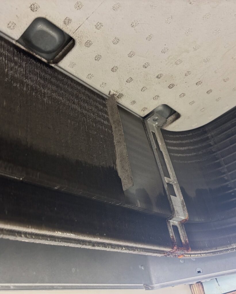 夏場に業務用エアコンで発生するエラー停止のほとんどは、ドレンパン(結露水の受け皿)に溜まった水がカビにより固形化し、それを吸い上げたドレンポンプ・ドレンホースが詰まることによるものです。