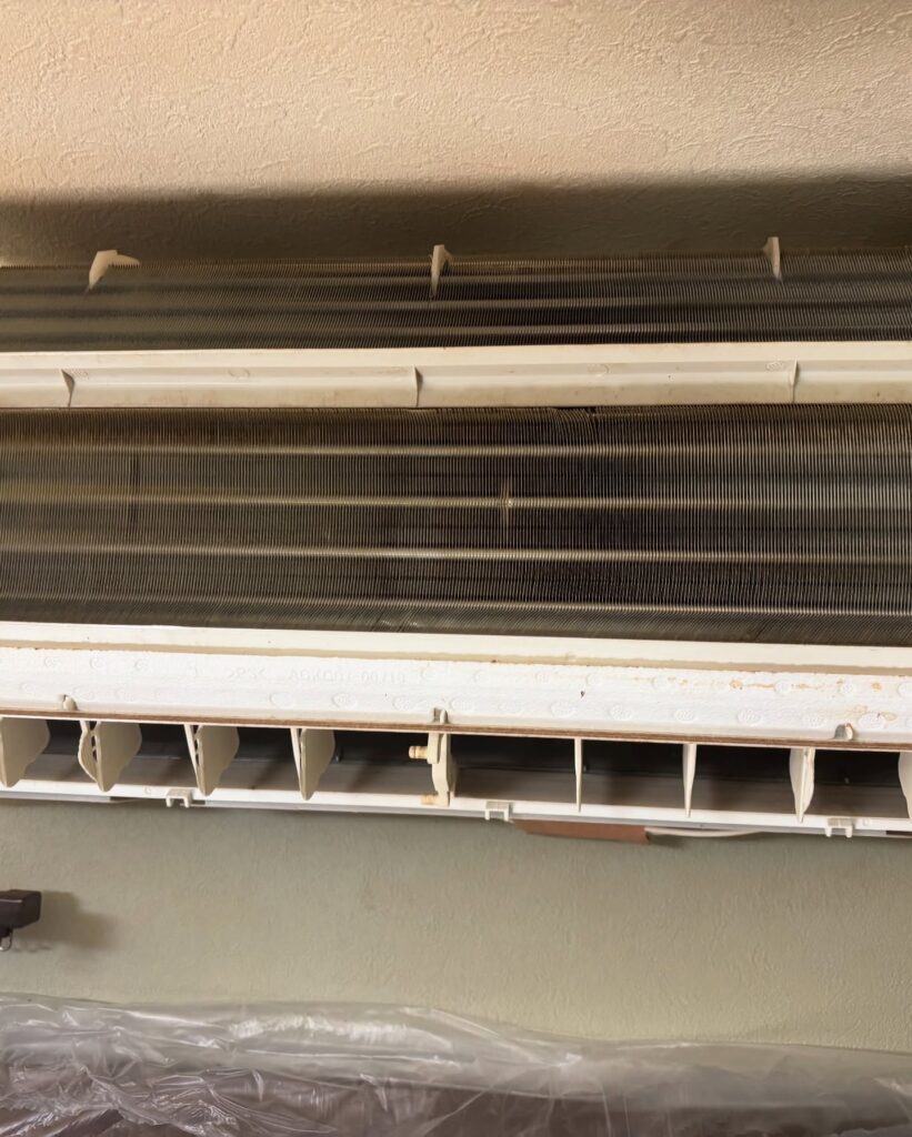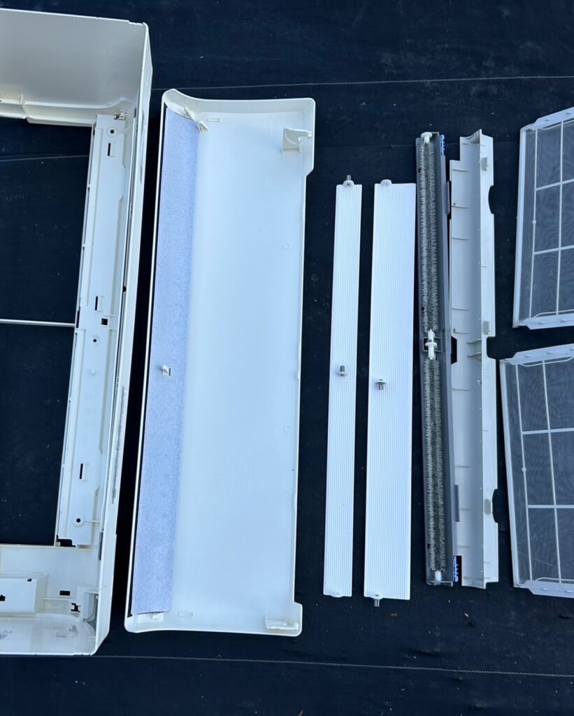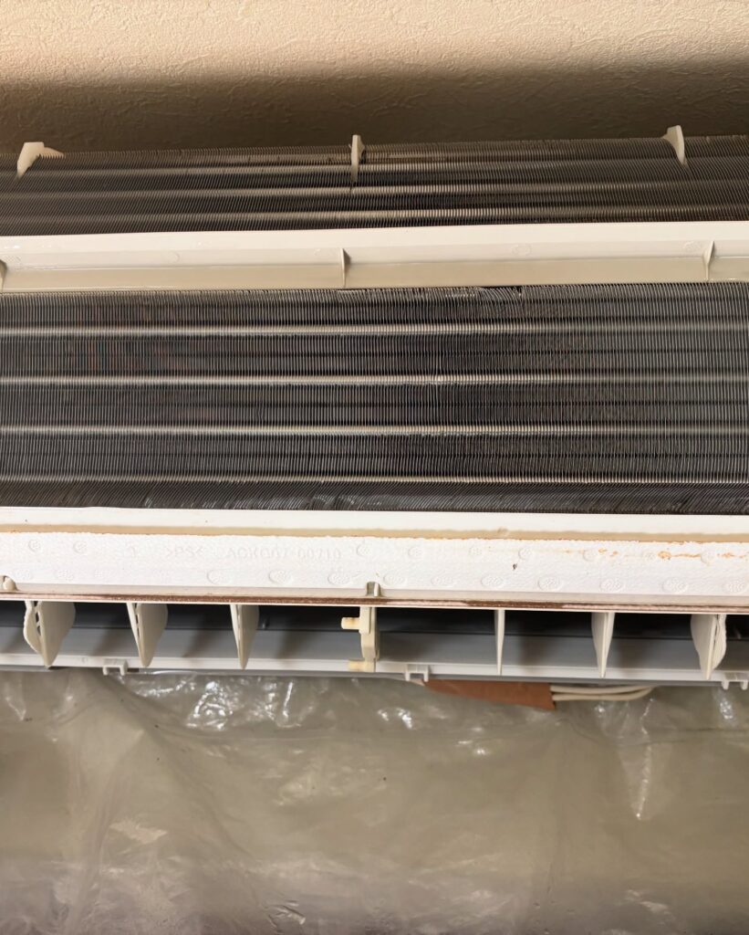 エアコンのパーツを取り外していき、丸裸の状態にします。