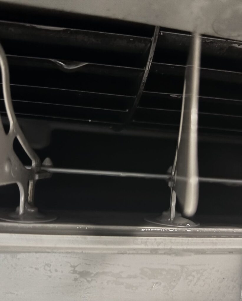 エアコン内部と取り外したパーツにエアコンクリーニング用洗剤を噴霧し、高圧洗浄により汚れを取り除いていきます。