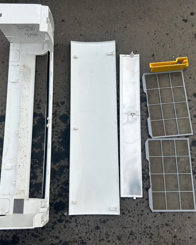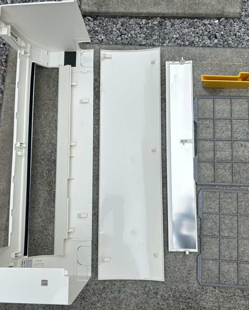 エアコンのパーツを取り外していき、丸裸の状態にします。