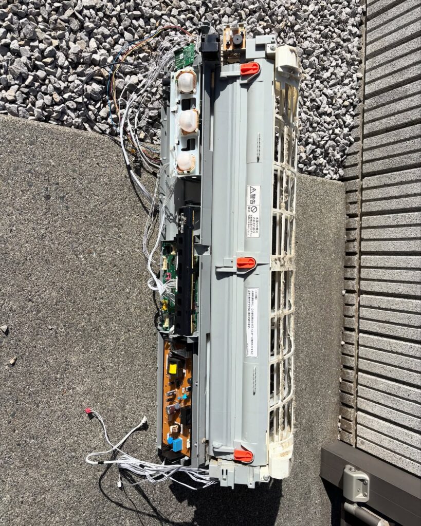 エアコンのパーツを取り外していき、丸裸の状態にします。