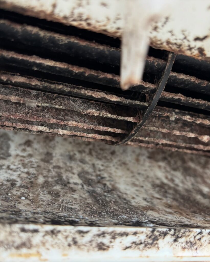 夏場に業務用エアコンで発生するエラー停止のほとんどは、ドレンパン(結露水の受け皿)に溜まった水がカビにより固形化し、それを吸い上げたドレンポンプ・ドレンホースが詰まることによるものです。