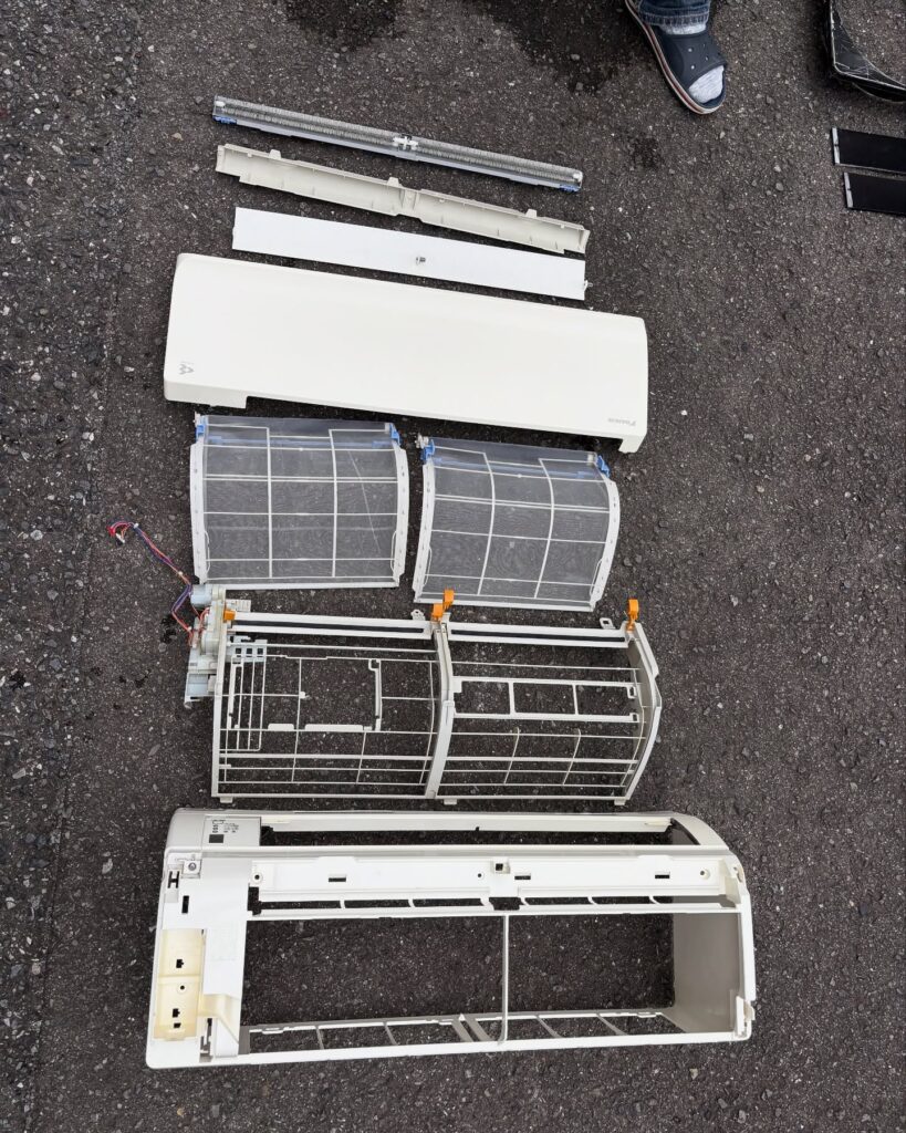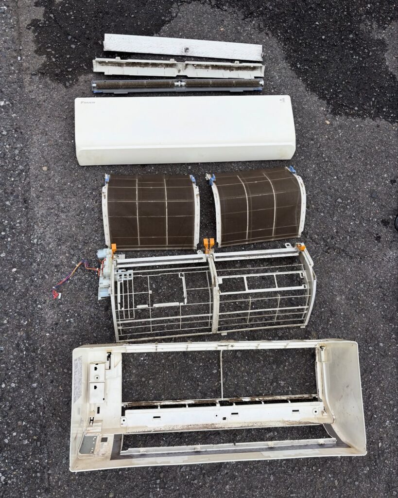 エアコンのパーツを取り外していき、丸裸の状態にします。