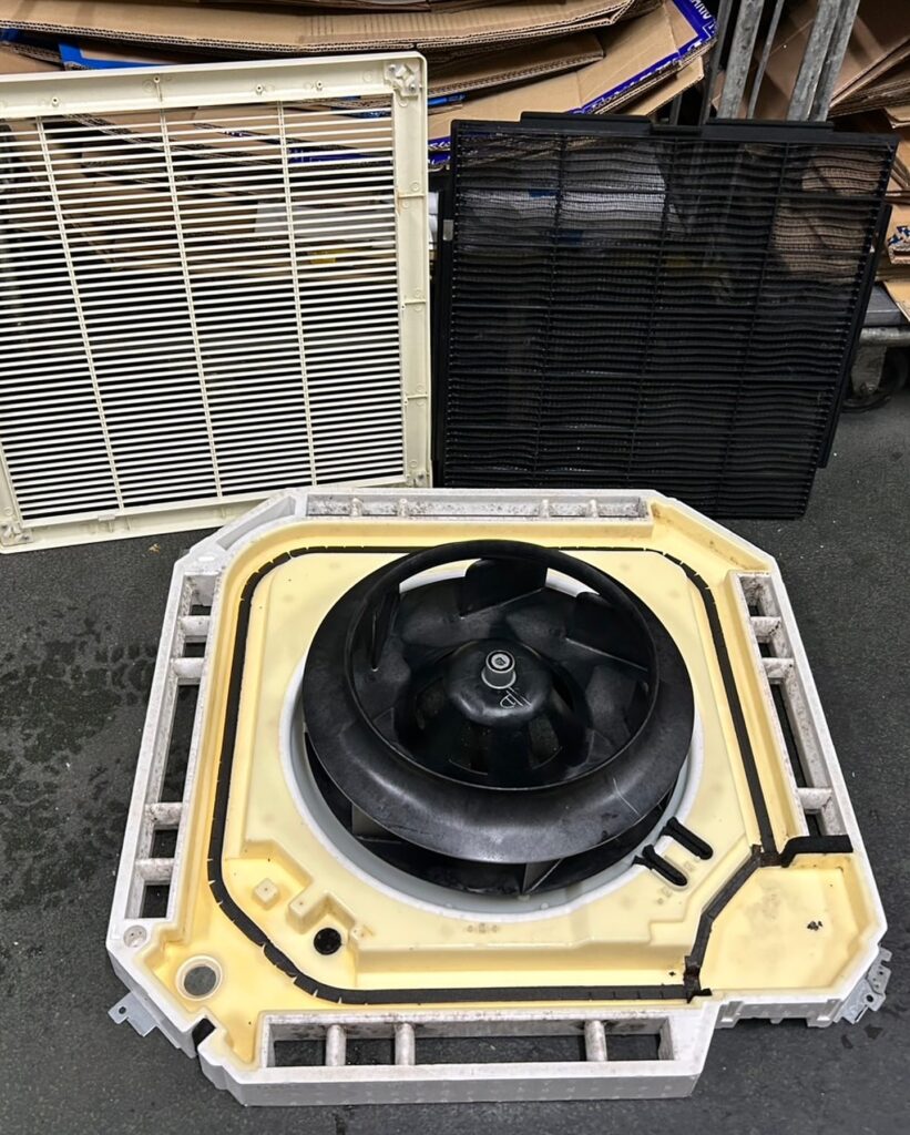 ドレンポンプも詰まる寸前で、放置すれば水漏れリスクとエアコンが停止する状態でしたが、内部までしっかり分解・洗浄し、本来の性能を取り戻しました。