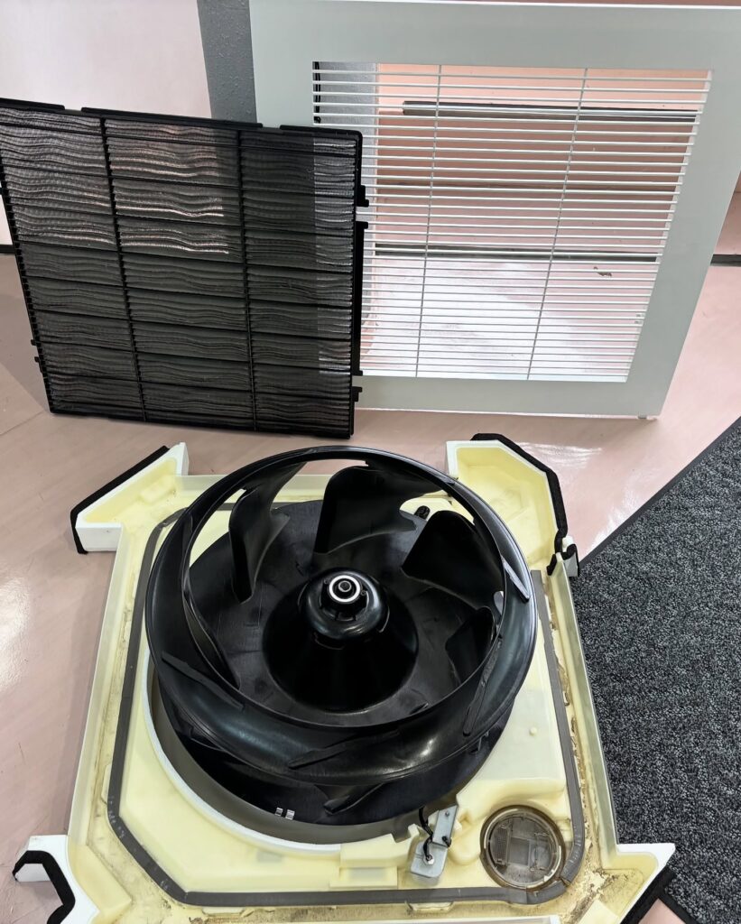 エアコンのパーツを取り外していき、丸裸の状態にします。