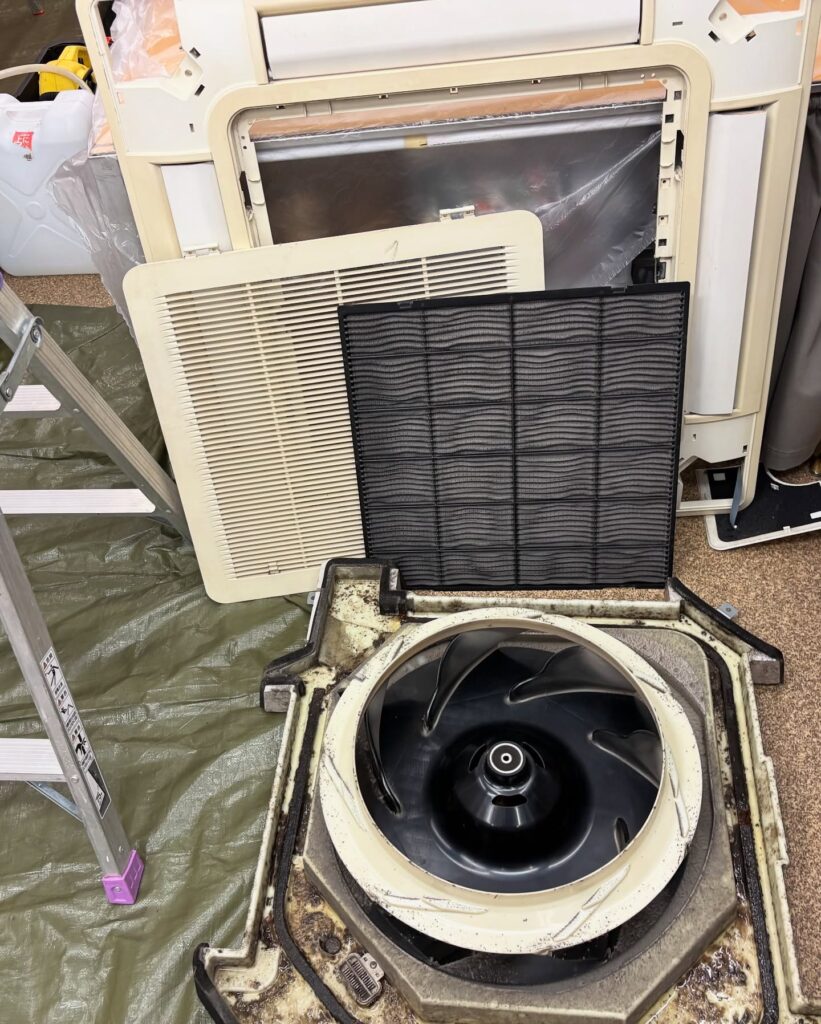 エアコンのパーツを取り外していき、丸裸の状態にします。