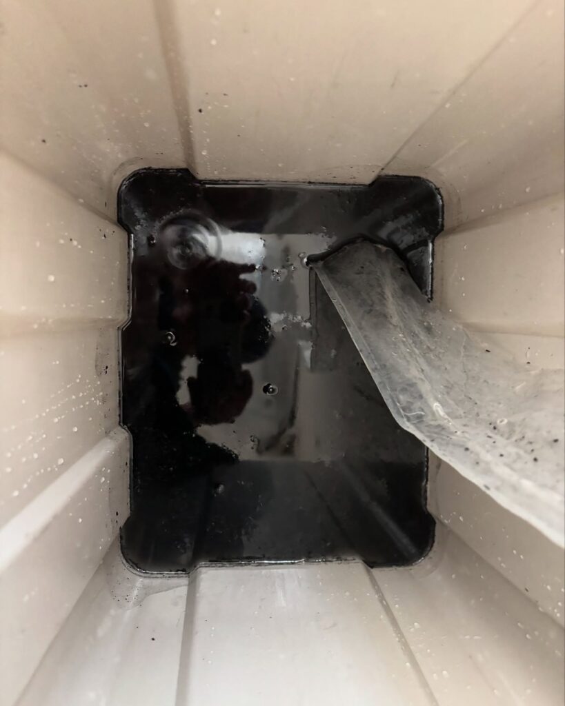 この時、ドレンポンプ(排水ポンプ)とドレンホース(排水ホース)内にも高圧洗浄を実施します。