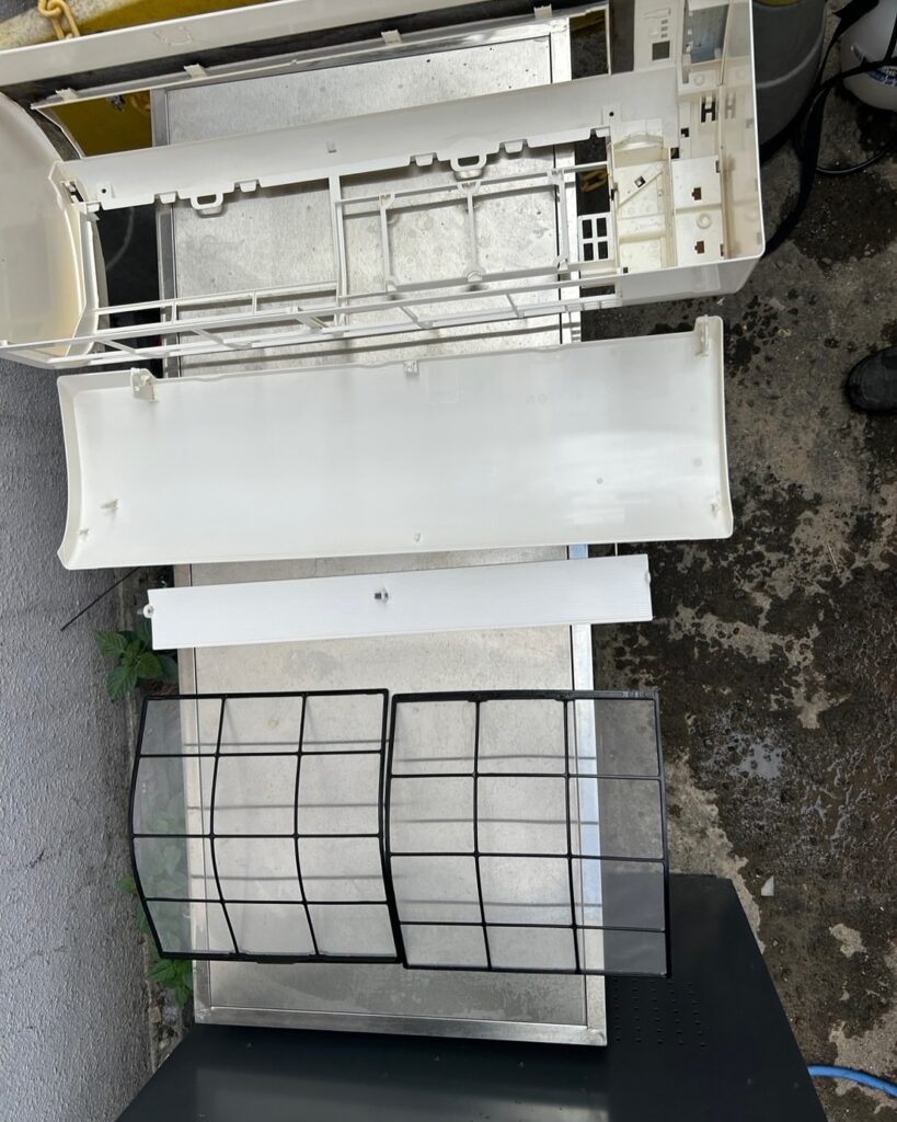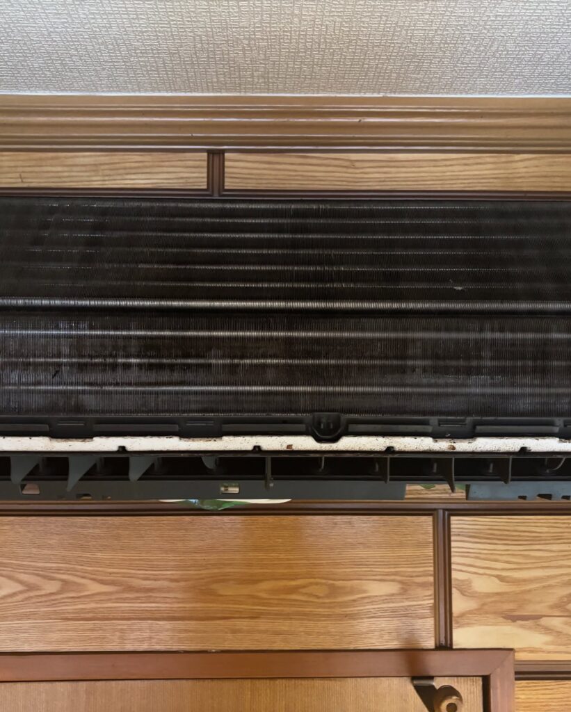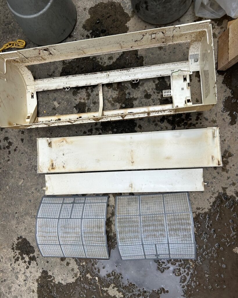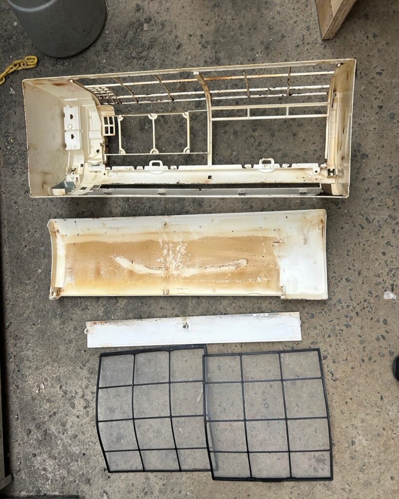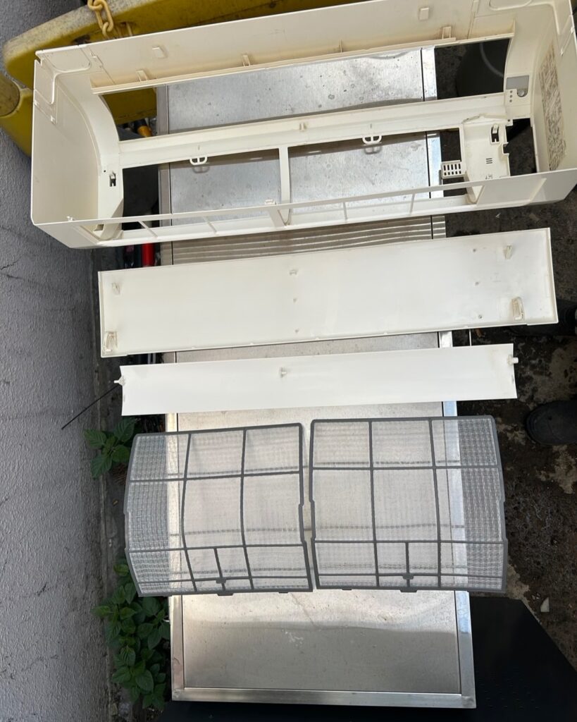 エアコンのパーツを取り外していき、丸裸の状態にします。