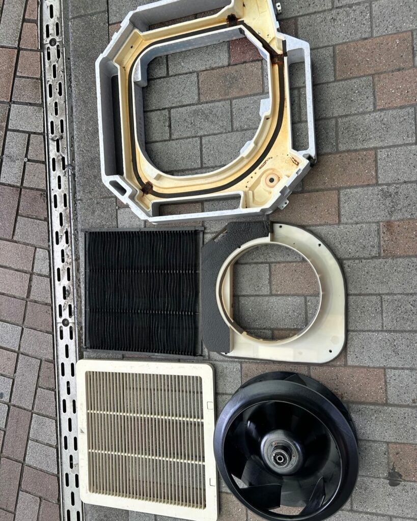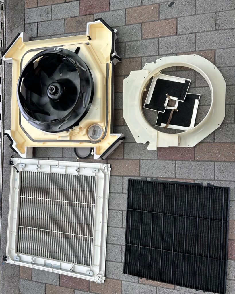 エアコンのパーツを取り外していき、丸裸の状態にします。