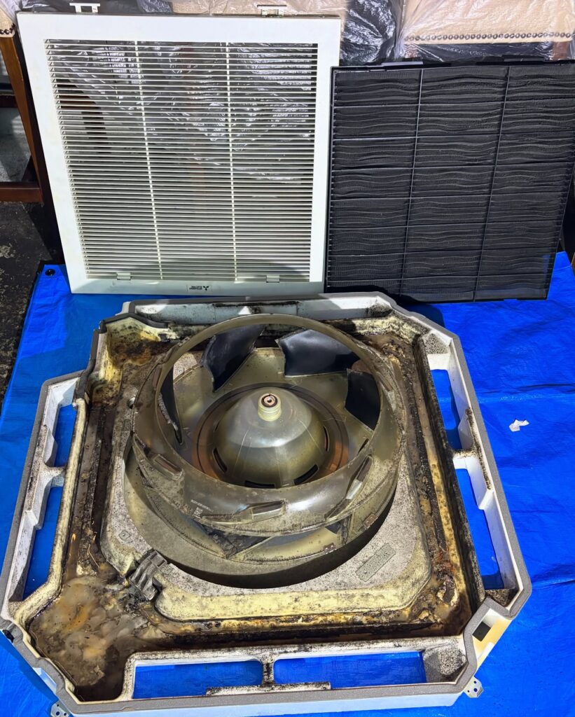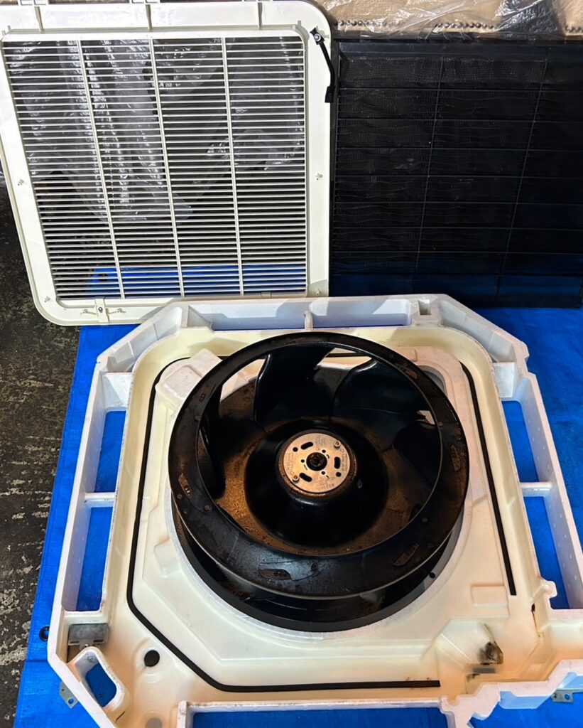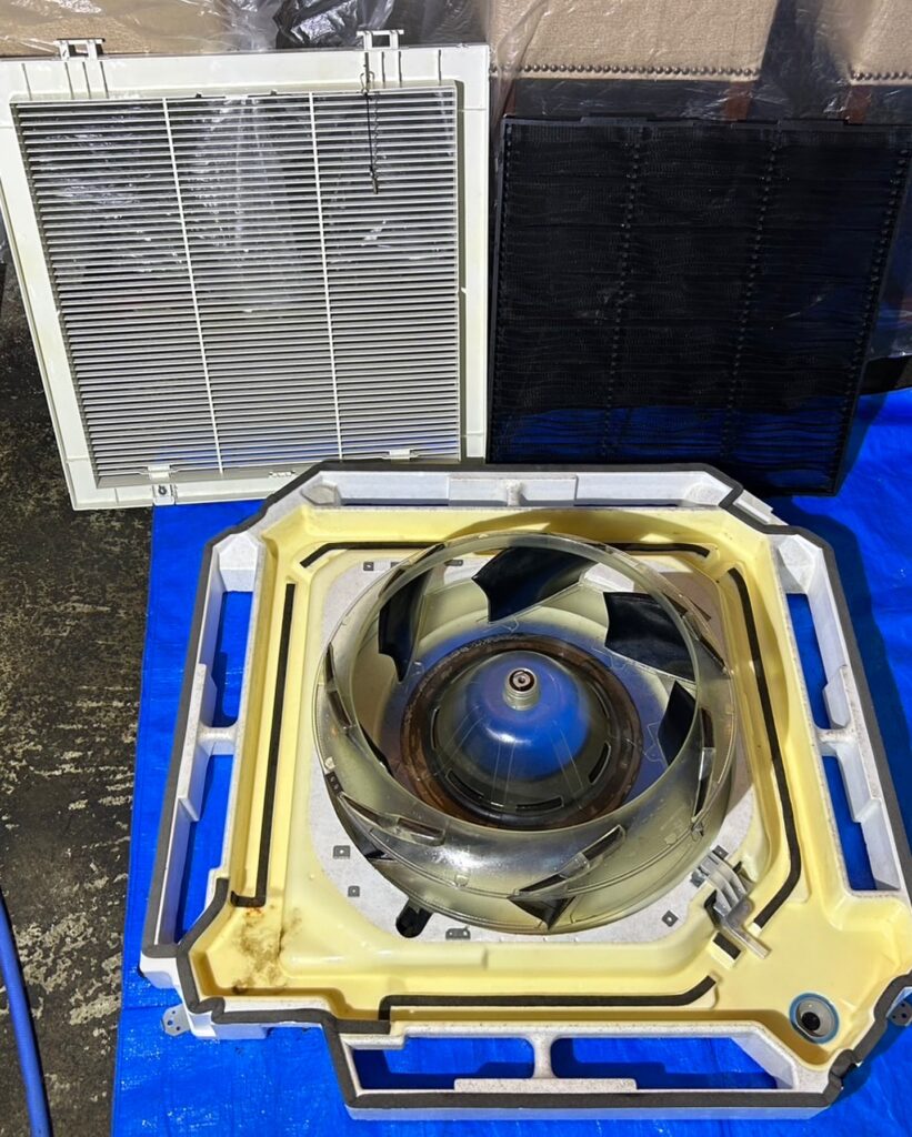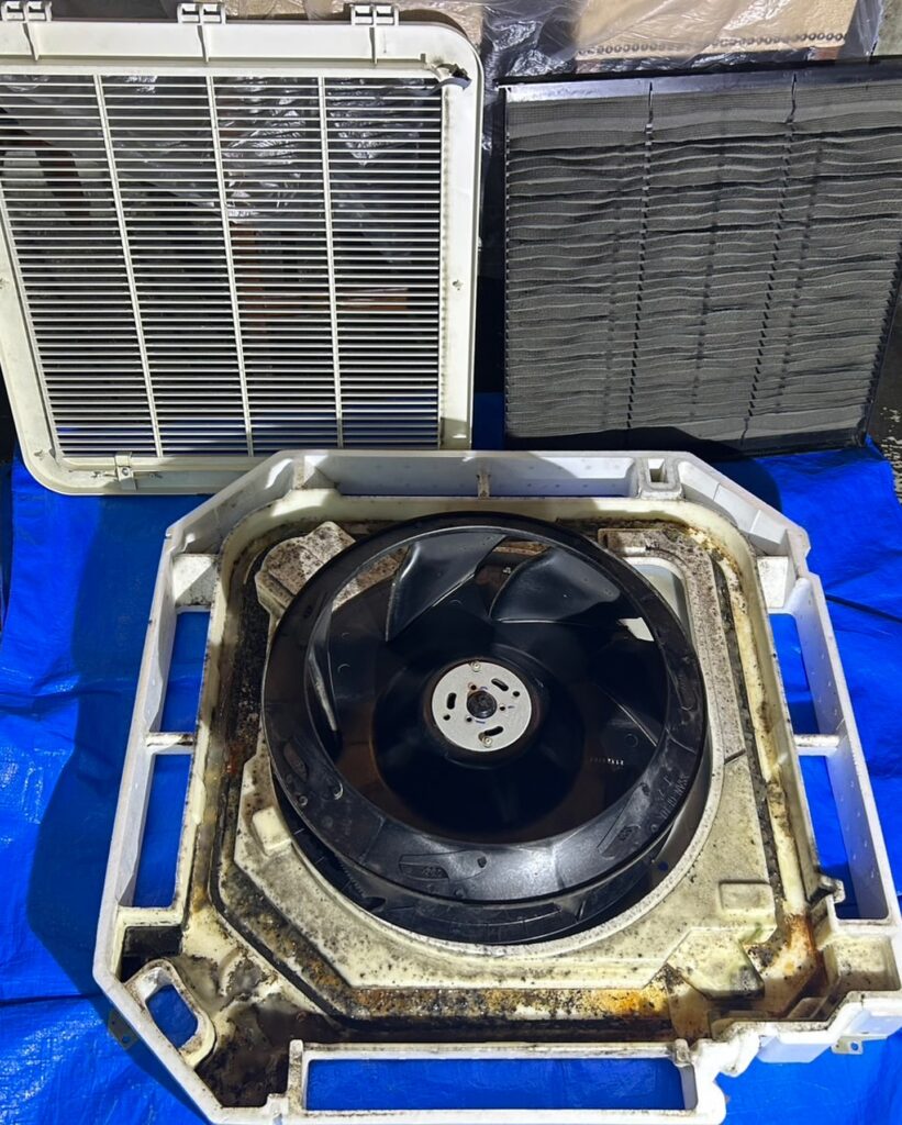 夏場に業務用エアコンで発生するエラー停止のほとんどは、ドレンパン(結露水の受け皿)に溜まった水がカビにより固形化し、それを吸い上げたドレンポンプ・ドレンホースが詰まることによるものです。