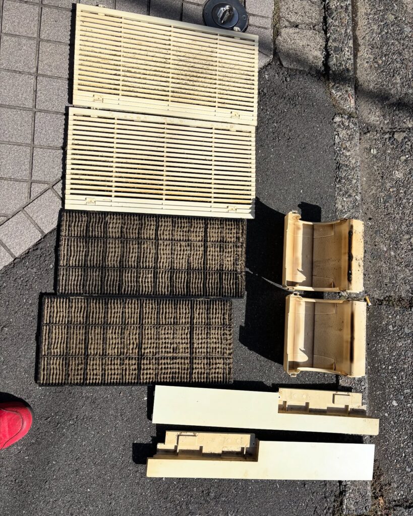 エアコンのパーツを取り外していき、丸裸の状態にします。