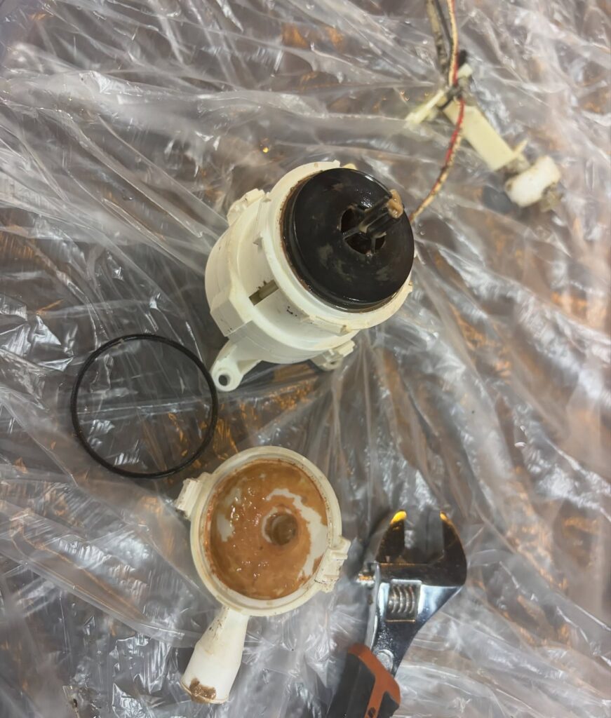 この時、ドレンポンプ(排水ポンプ)とドレンホース(排水ホース)内にも高圧洗浄を実施します。