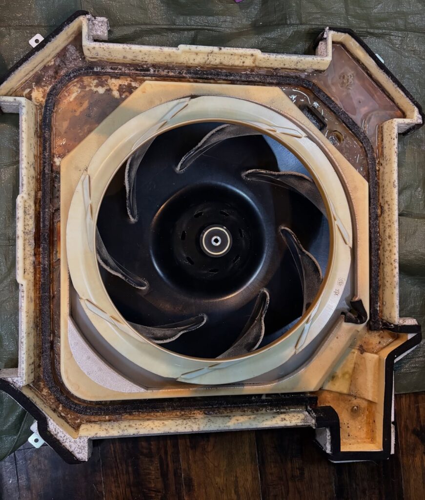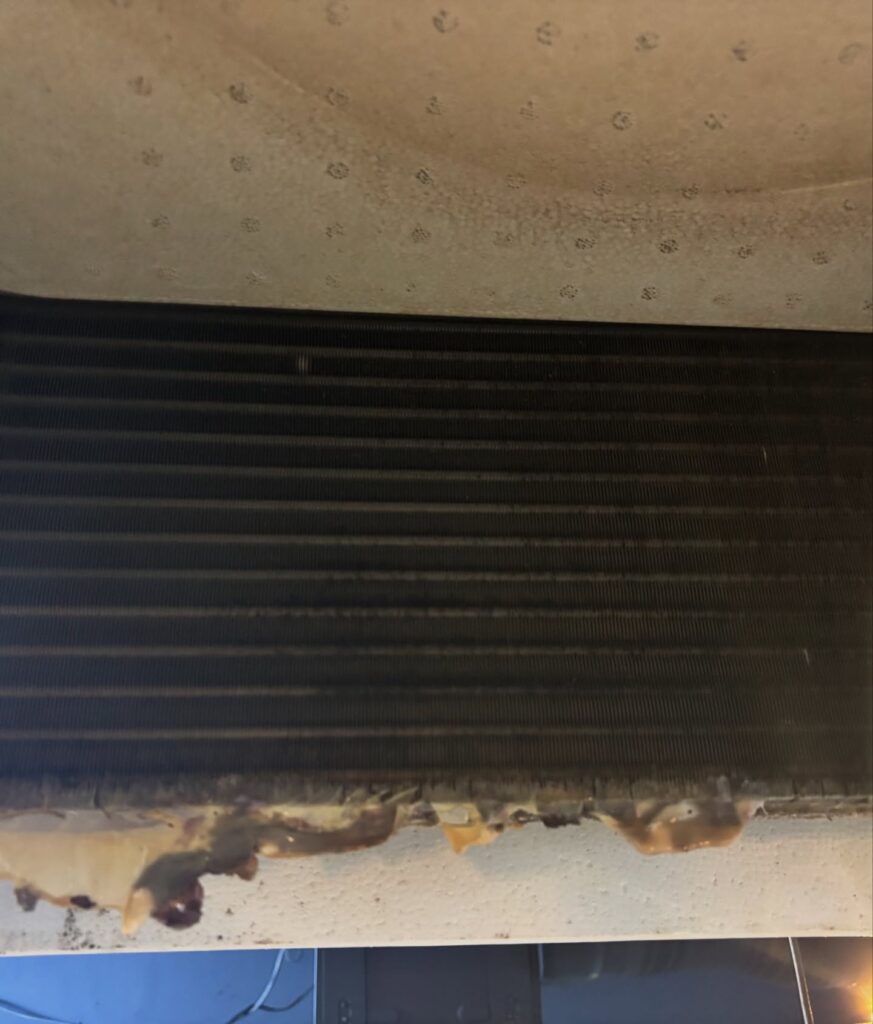 夏場に業務用エアコンで発生するエラー停止のほとんどは、ドレンパン(結露水の受け皿)に溜まった水がカビにより固形化し、それを吸い上げたドレンポンプ・ドレンホースが詰まることによるものです。