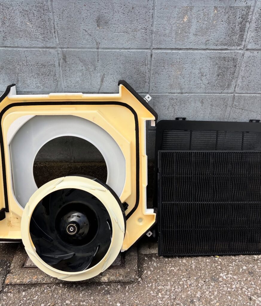 エアコンのパーツを取り外していき、丸裸の状態にします。