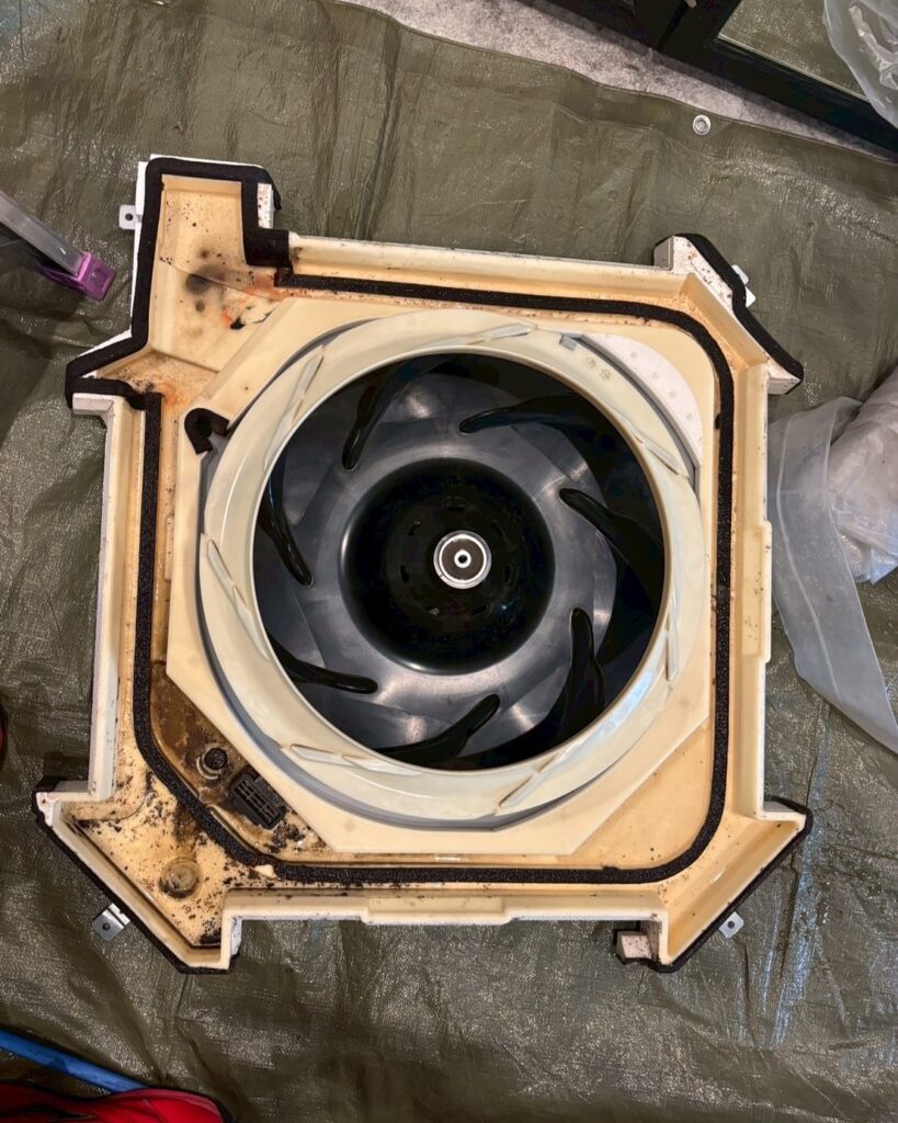 エアコンのパーツを取り外していき、丸裸の状態にします。
